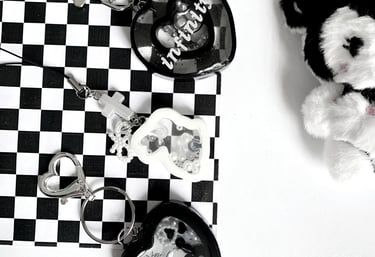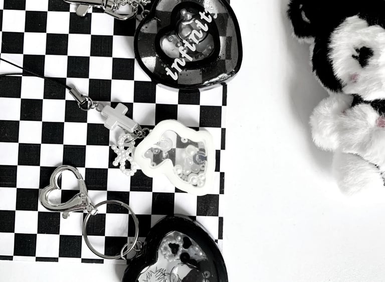 ¡hola! soy mónica, tengo 23 años, y me dedico a hacer cositas con resina y bisutería desde el 2022. también diseño y dibujo llaveros, botones y pines!